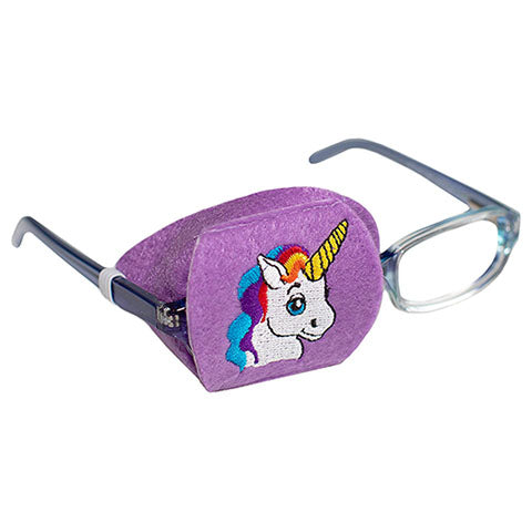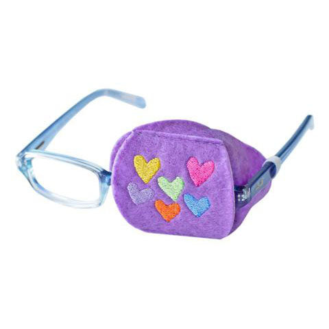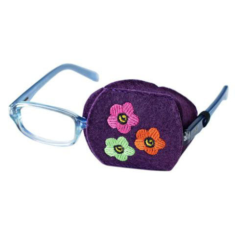 Patch Pals are made of a felt-like material and slide over the lens.