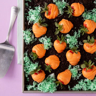 Chocolate dipped strawberry 'carrots' make this dessert fun all spring long, not just for Easter!