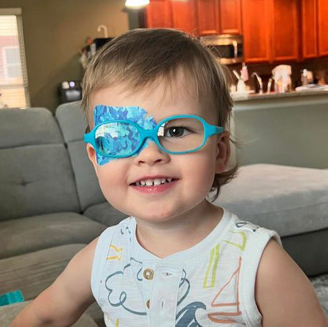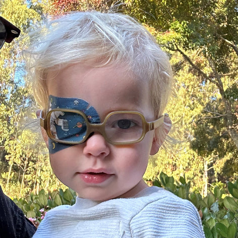 "Jack started patching about a year ago after being diagnosed with accommodative esotropia and amblyopia in his left eye. As his vision has improved, he now wears his patch every other day, and he has lots of fun choosing his design on patch days. His current favorite is the astronaut patch!"